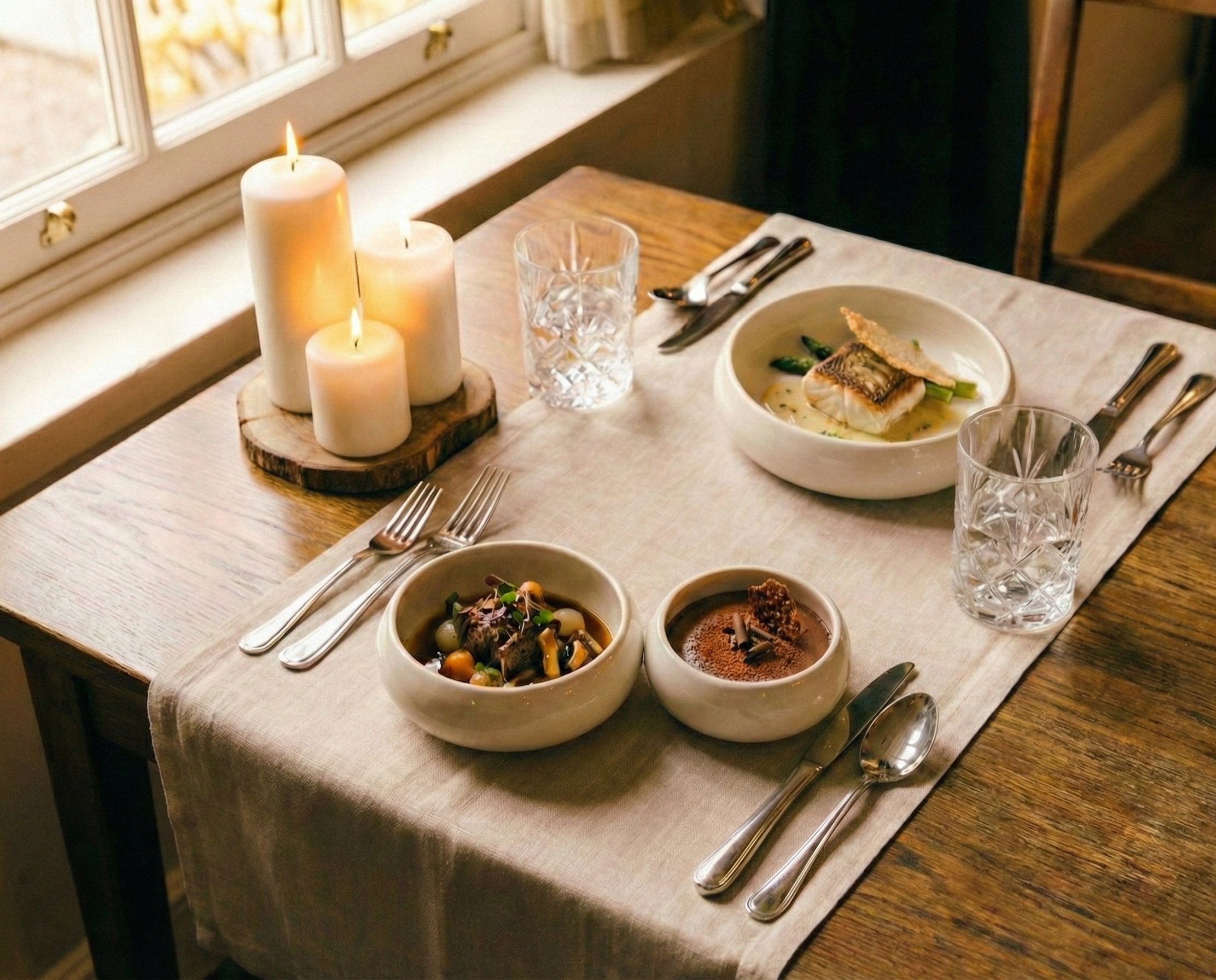 Une expérience culinaire haut de gamme, servie dans notre vaisselle Guy Degrenne consignée. Menus à partir de 24,99 € / pers.